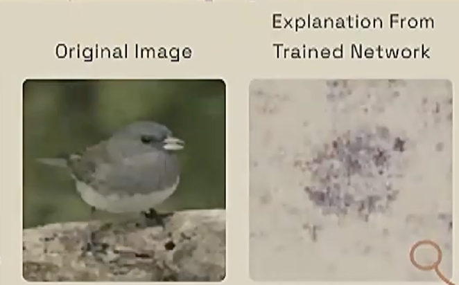 但问题来了:我们如何判断所找到的抽象表达是“合适的”本质?如果我们训练一个CNN神经网络,能够识别图片中的小鸟。那么把这幅小鸟的照片的像素一一判断,有些像素对于判断这是一只小鸟是重要的,我们给它们赋予一个灰度值,无关像素应该设为空白。利用下文中提到的工具,我们产生一张“像素重要性”地图。总体来说,我们能够看到一份模糊的小鸟外形,这没问题,可是,为什么有些与小鸟完全无关的像素也具有非零值?在多个实验中,与小鸟无关的像素,也在推理中发挥了重要作用。对它稍加更改,模型就无法识别小鸟。更有甚者,这种方法被利用来做对抗性破坏。所以,这个CNN模型不够精简,编码了无关模式。